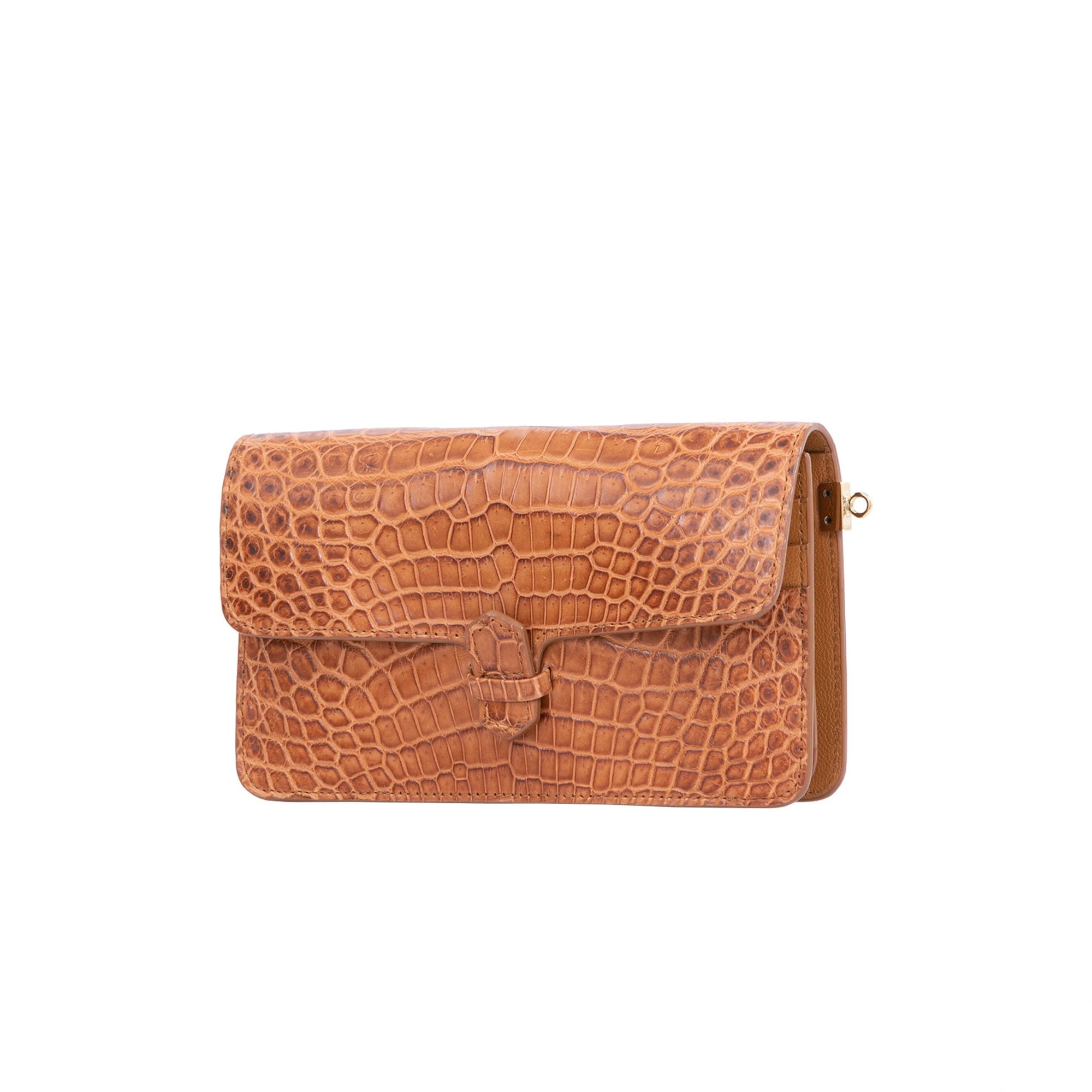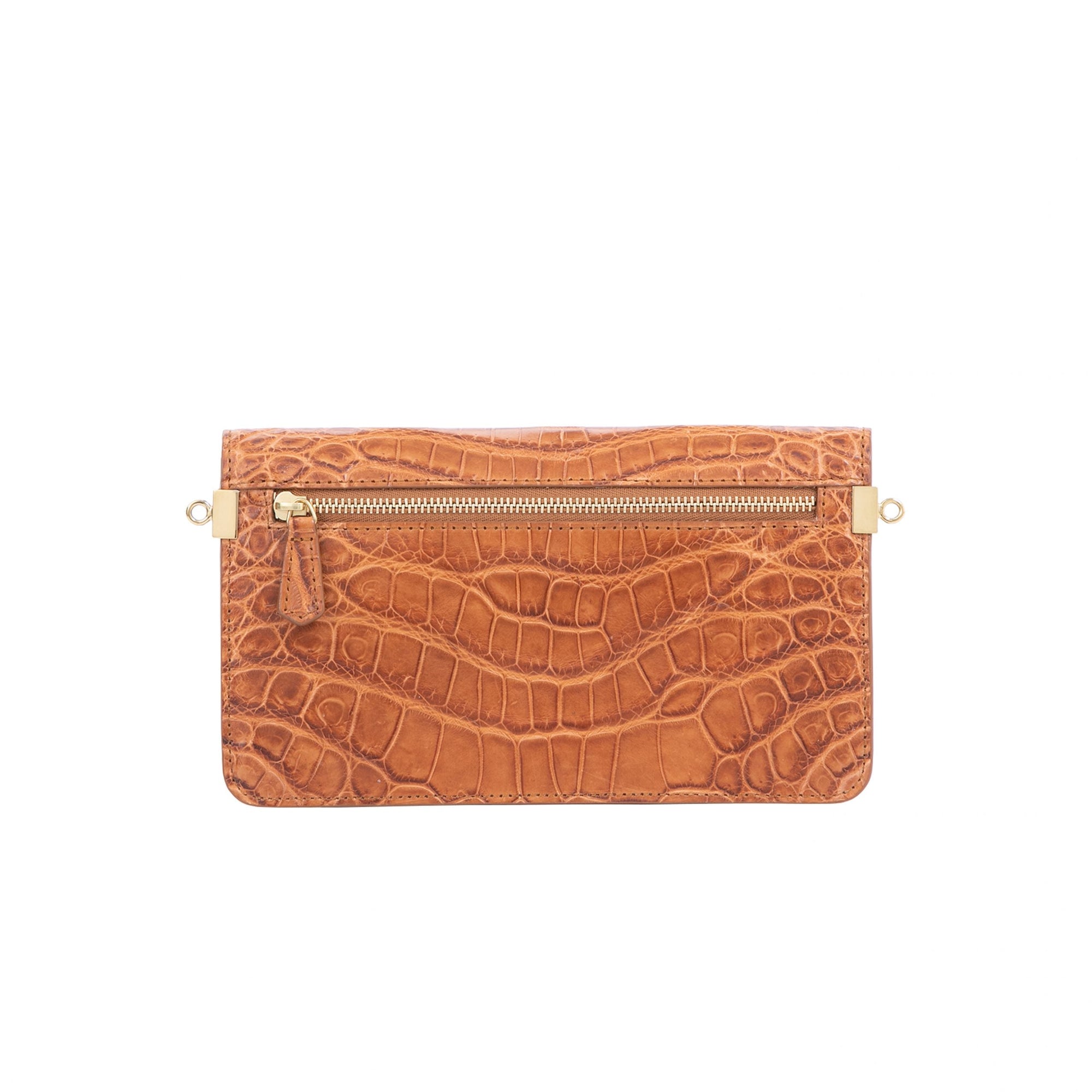 Accordion Crossbody Wallet in Cognac Crocodile