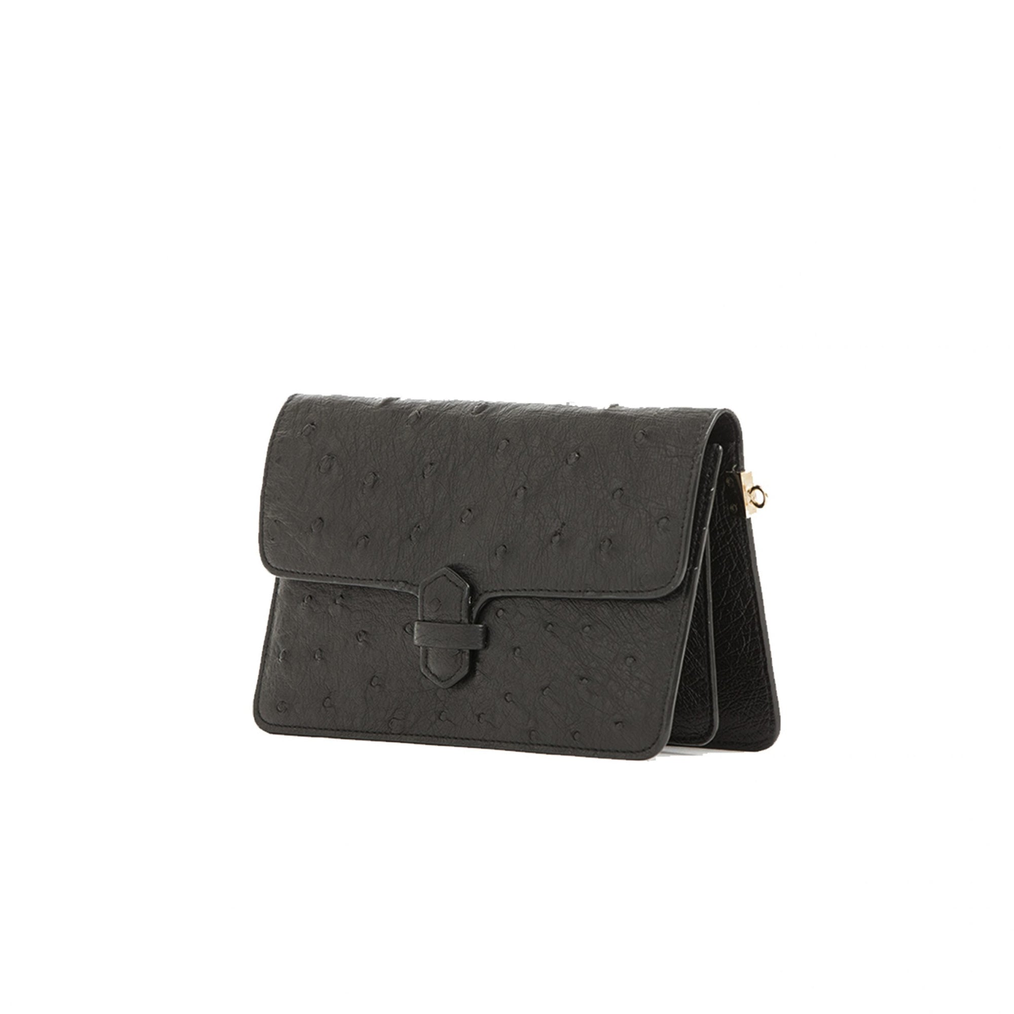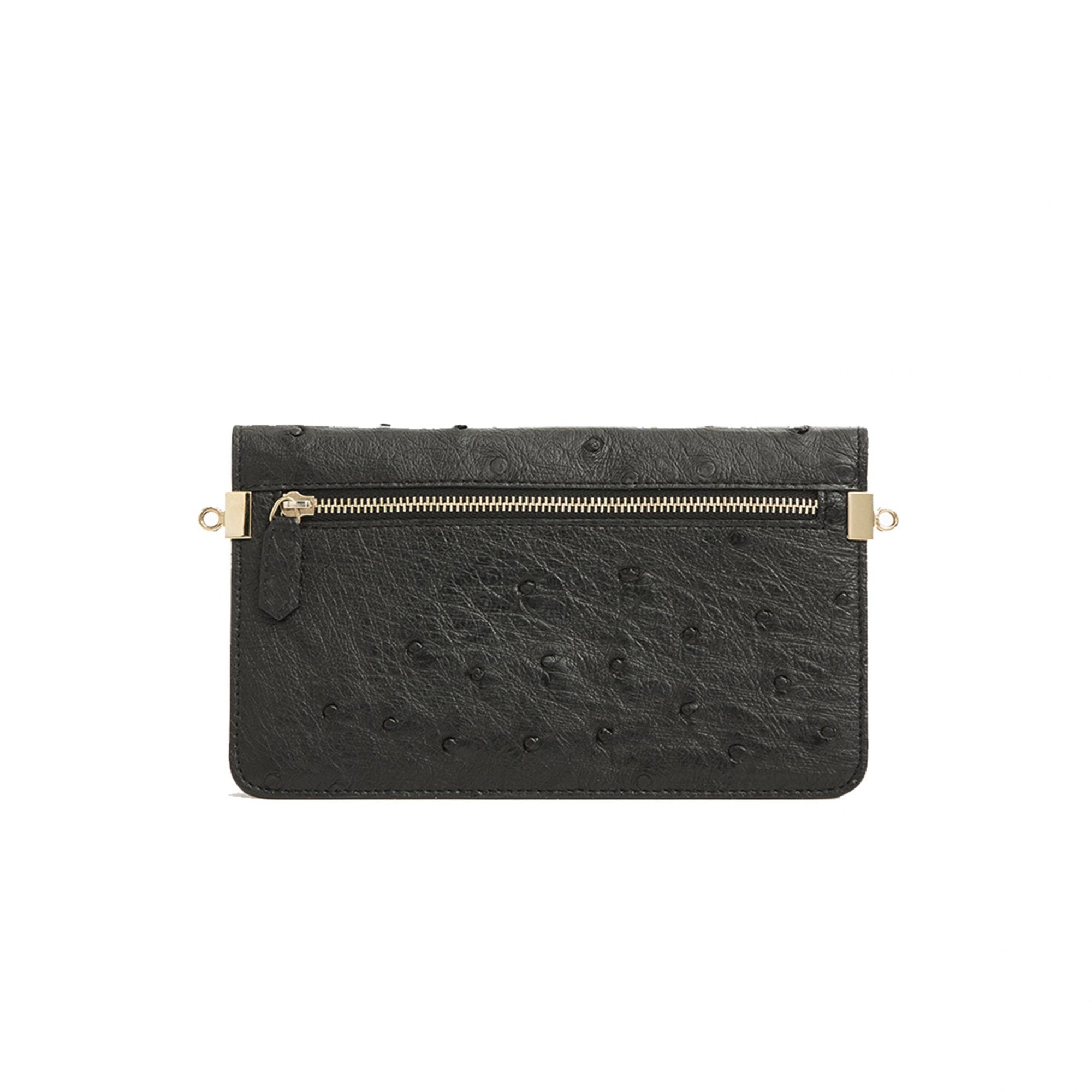Accordion Crossbody Wallet in Black Ostrich Leg