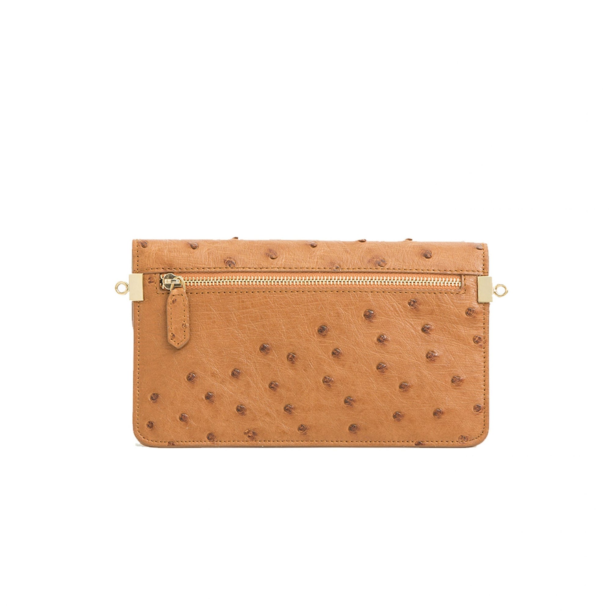 Accordion Crossbody Wallet in Cognac Ostrich