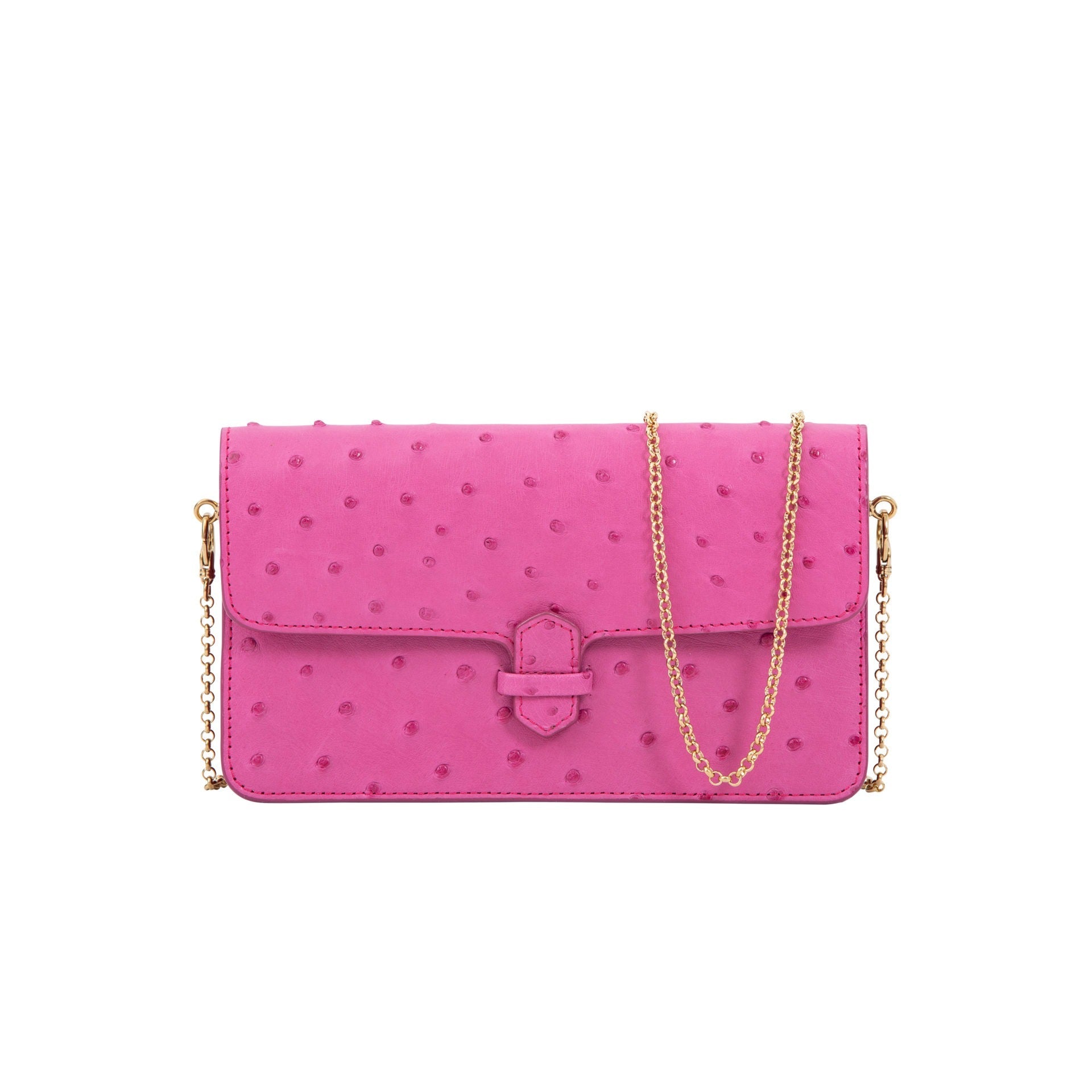 Accordion Crossbody Wallet in Cyclament Ostrich Leg